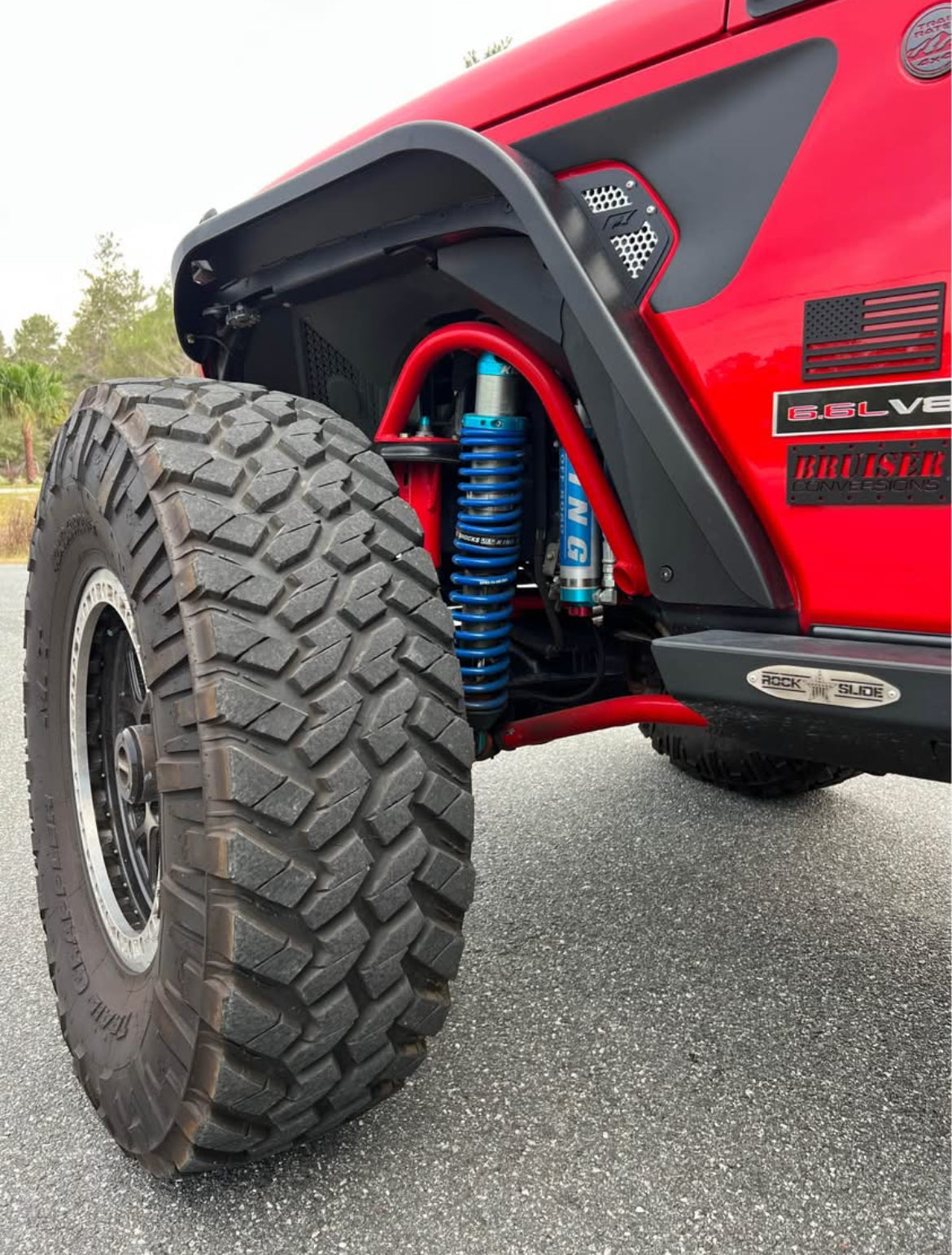 2018 Jeep Wrangler JL Bruiser Conversion for sale! Bruiser LX3 6.6L engine conversion. PSC steering, King coilovers, Dana 60 axles, KMC beadlocks, 42" Nitto Trail Grapplers, Rockslide Engineering step sliders, Cold Air intake, Custom exhaust, Warn winch, Motobilt rear tailgate kit with Maxbilt lights, Rebel bak-pax kit with Rotopax storage cans, Midland GMRS, Cobra CB, KC cyclone rock lights, Dual ARB, Artec inner fenders, Rigid Q series cowl lights, Rigid 20" hood light bar, Rigid 20" rear bumper light bar, Rigid rear bumper cube lights and more!